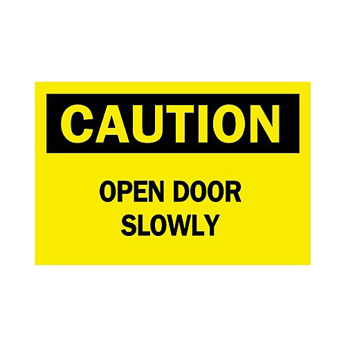 Brady, 84707, 10" x 14" Polyester Caution Open Door Slowly Sign, Black on Yellow