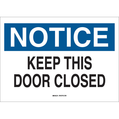 Brady, 84733, 10" x 14" Polyester Notice Keep This Door Closed Sign, Black/Blue on White