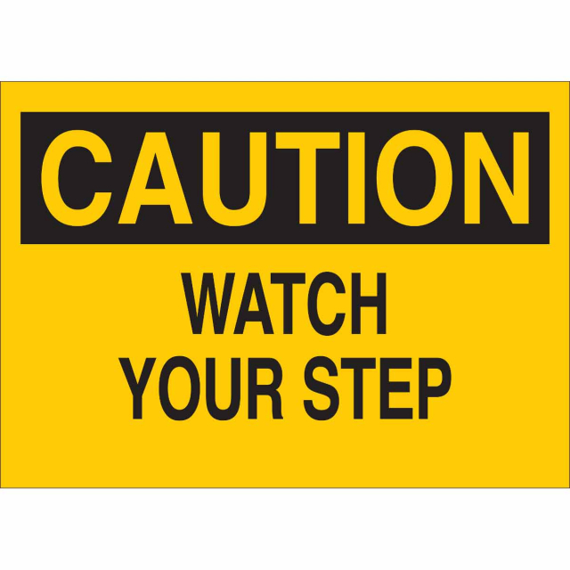 Brady, 85097, 7" x 10" Polyester Caution Watch Your Step Sign, Black on Yellow