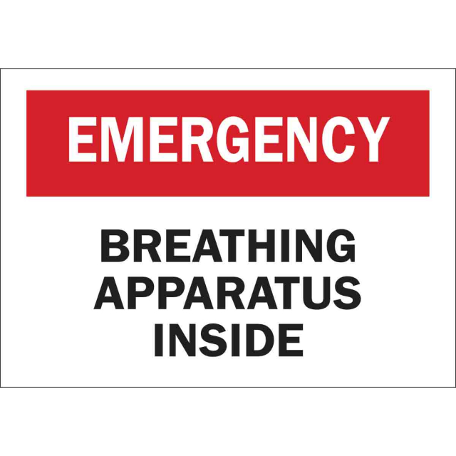 Brady, 85343, 7"x10" B-302 Emergency Breathing Apparatus Inside Sign, Black/Red on White