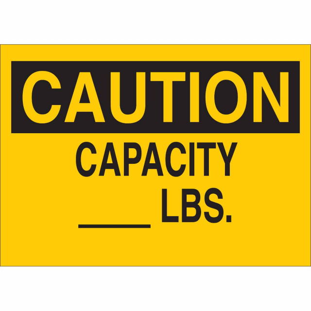 Brady, 85573, 10" x 14" Polyester Caution Capacity _____ Lbs Sign, Black on Yellow