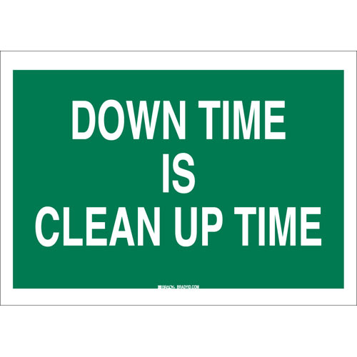 Brady, 85706, 7" x 10" Polyester Down Time Is Clean Up Time Sign, White on Green