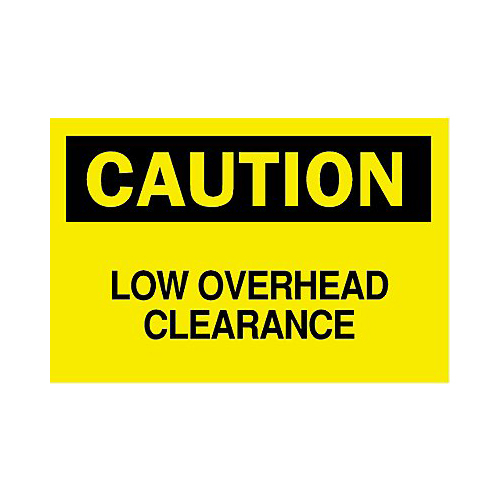 Brady, 85859, 10" x 14" Polyester Caution Low Overhead Clearance Sign, Black on Yellow