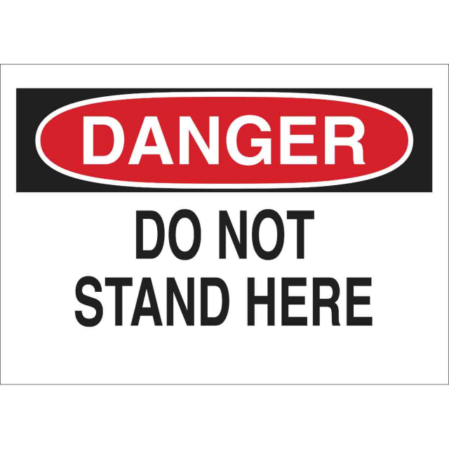 Brady, 85949, 7" x 10" Polyester Danger Do Not Stand Here Sign, Black/Red on White