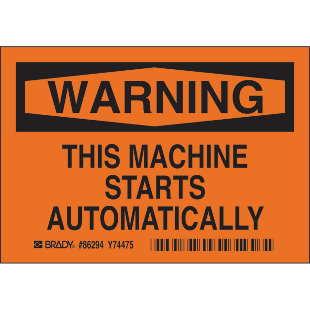 Save 5% each on Brady 86294 3.5" x 5" Polyester Warning This Machine Label when you purchase 25 or more