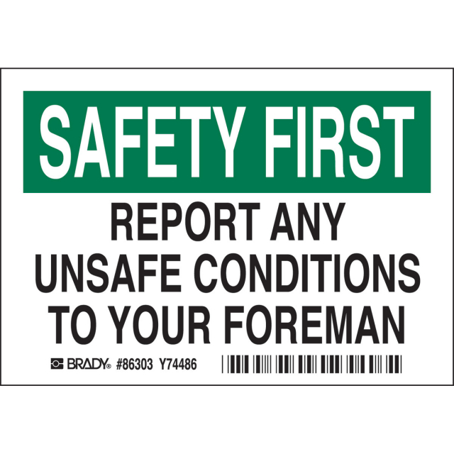 Save 7% each on Brady 86303 3.5" x 5" Polyester Safety First Label when you purchase 50 or more