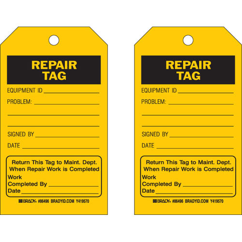 Brady, 86496, 7" x 4" B-302 Accident Prevention Tag: Repair Tag: Equipment...