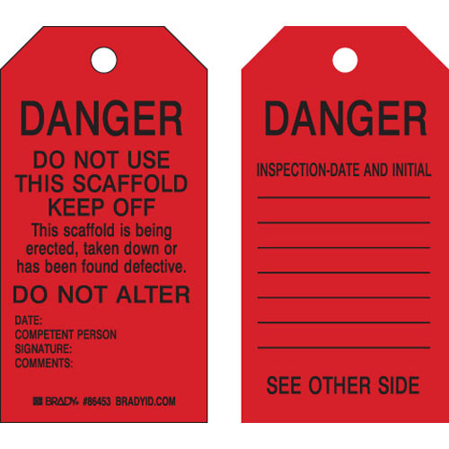 Brady, 86683, 5.75"x3" Paper Scaffolding Tag: Danger: Do Not Use This Scaffold..., Black