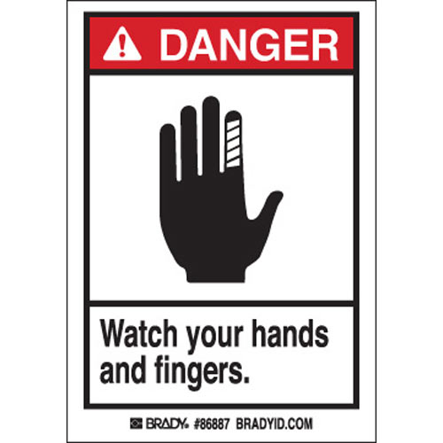 Save 7% each on Brady 86887 Danger Watch Your Hands & Fingers. Label when you purchase 50 or more
