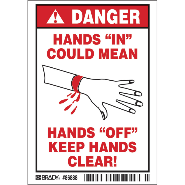 Save 5% each on Brady 86888 7" x 10" Polyester Danger Hands "In" Sign when you purchase 25 or more
