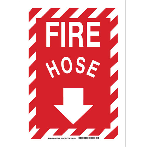 Save 7% each on Brady 90384 14" x 10" Polyester Fire Hose Sign, White on Red when you purchase 50 or more