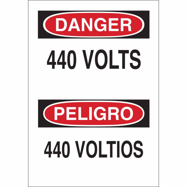 Brady 90820 Bilingual Danger 440 Volts Sign, Black/Red