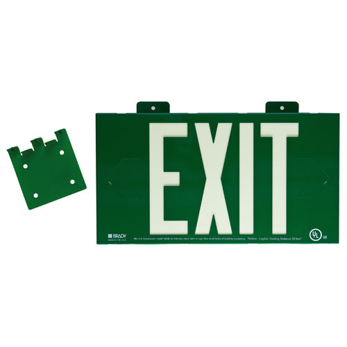Brady, 90842B, 90842 8.25" x 15.25" Plastic BradyGlo Exit Sign, Glow on Green