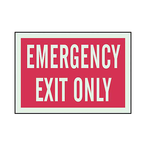 Brady 90944 Emergency Exit Only Sign, Red on Glow
