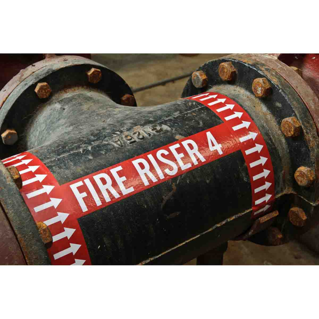 Brady 91426 1" x 30' Vinyl Pipe Marker Tape with Arrows, White on Red