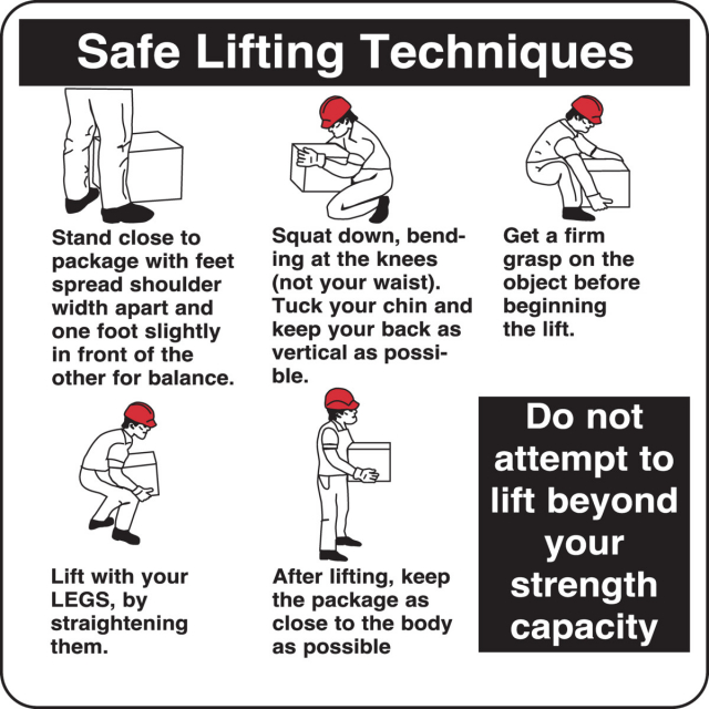 Help ensure your employees know the correct way to lift with these safe lifting tip labels.