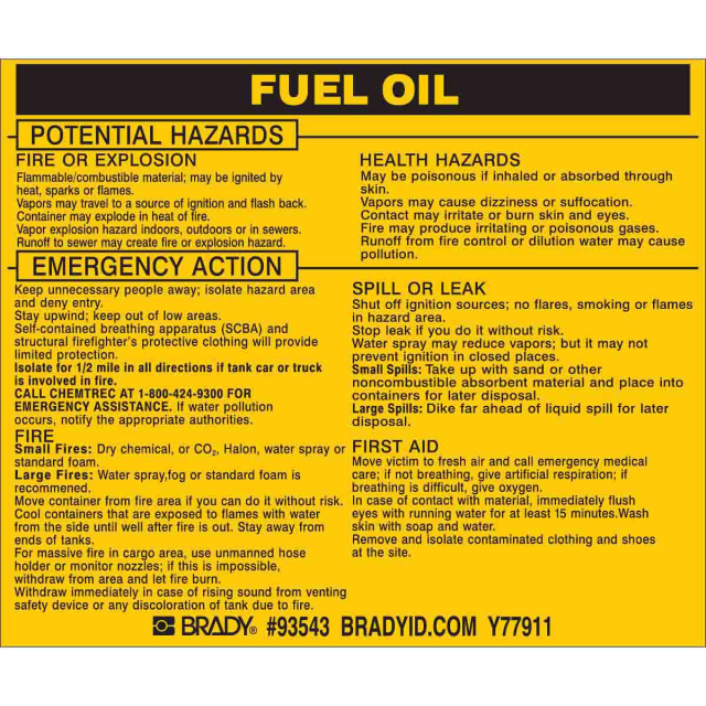 Save 5% each on Brady 93543 3.5" x 4.5" Vinyl Fuel Oil Label when you purchase 25 or more