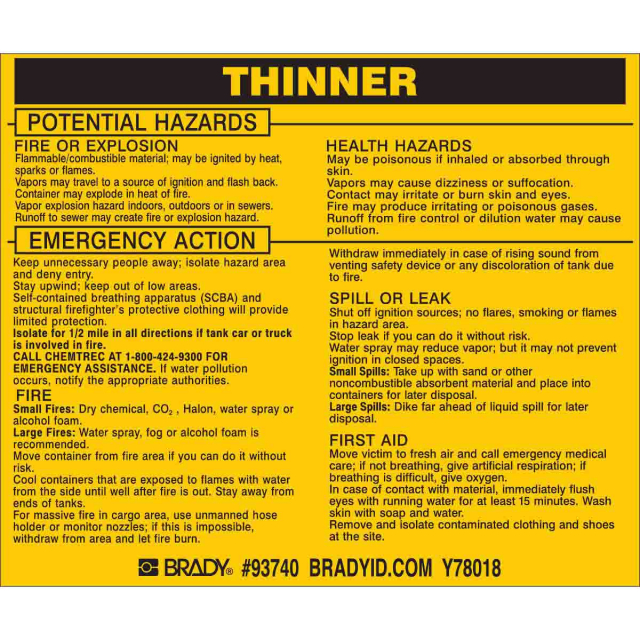 Black on yellow vinyl labels provide workers with all of the chemical information they'll need for hazardous materials they may encounter.