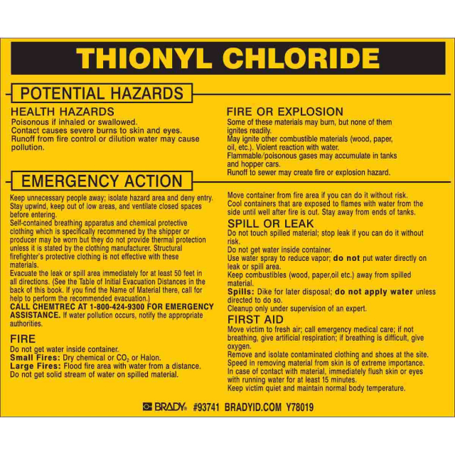 Save 7% each on Brady 93741 3.5" x 4.5" Vinyl Thionyl Chloride Label when you purchase 50 or more