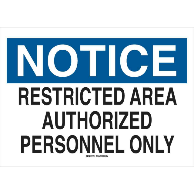 Brady, 95246, 10"x14" B-555 Notice Restricted Area Authorized Personnel Only Sign
