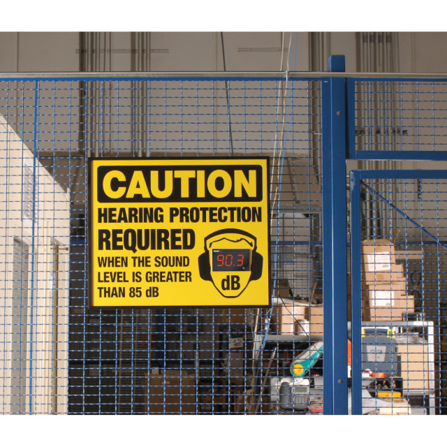 Rely on the interactive Decibel Status Sign to continuously measure and display the decibel level in your facility and inform workers of hearing protection requirements.