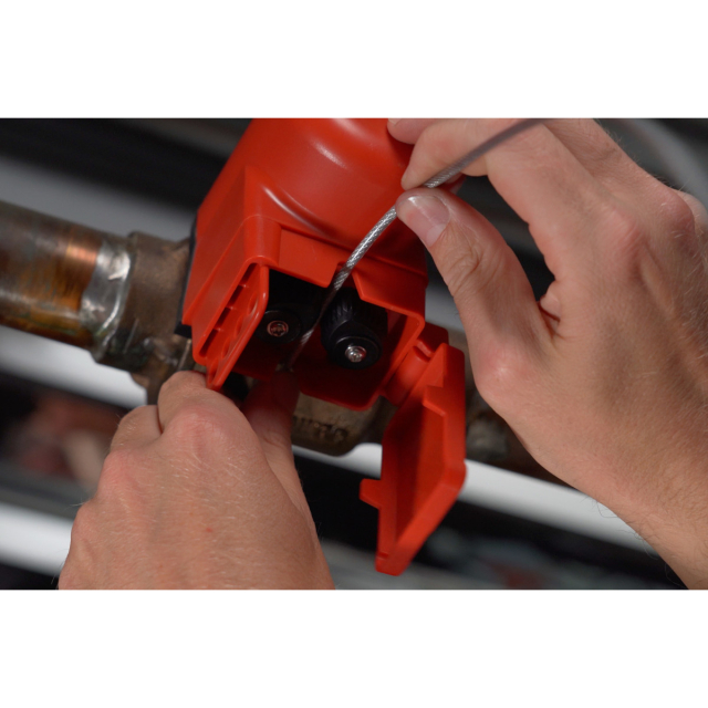 No handle, no problem - bring the convenience of cable lockouts to handle-off ball, gate and pneumatic valves with the versatile No-Handle Valve Lockout with Cable.