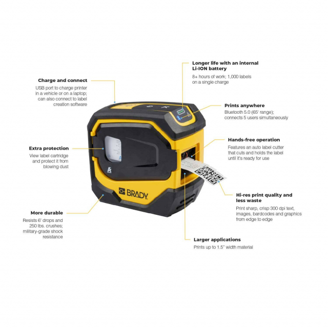 | Software Compatibility | Brady Workstation, Express Labels Mobile App, Windows based driver for 3rd party software use |