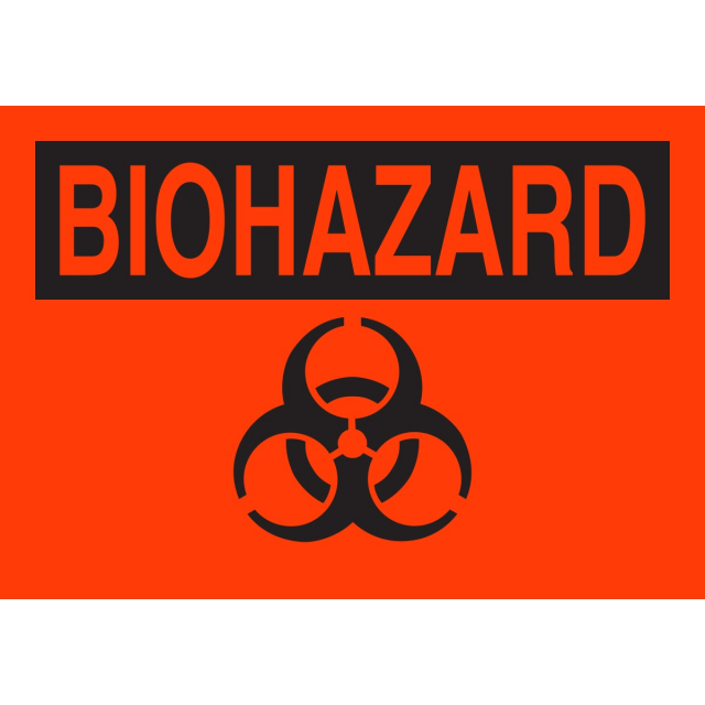 Identify the actual or potential presence of a biologically hazardous material using Biohazard Labels made from self-sticking vinyl (B-585) material.