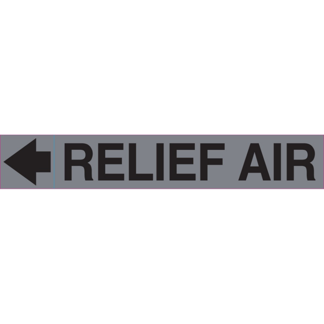 Brady, 6652B-1HV, "Relief Air" Plenum Duct Marker, 8" or Larger, Black on Silver