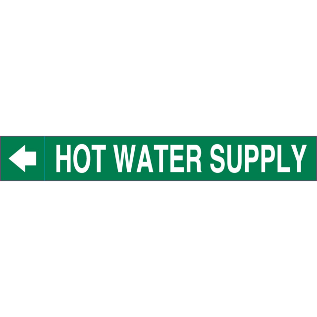 Brady, 6666B-1, "Hot Water Supply" Plenum Duct Marker, 2.5" - 7.785", White on Green