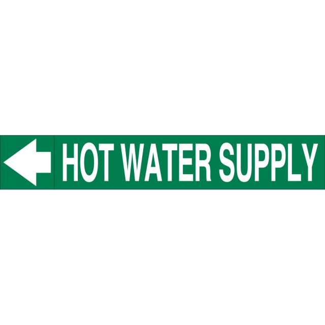 Brady, 6666B-1HV, "Hot Water Supply" Plenum Duct Marker, 8" or Larger, White on Green