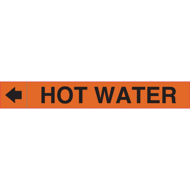 Brady, 6677B-1, "Hot Water" Plenum Duct Marker, 2.5" - 7.785", Black on Orange