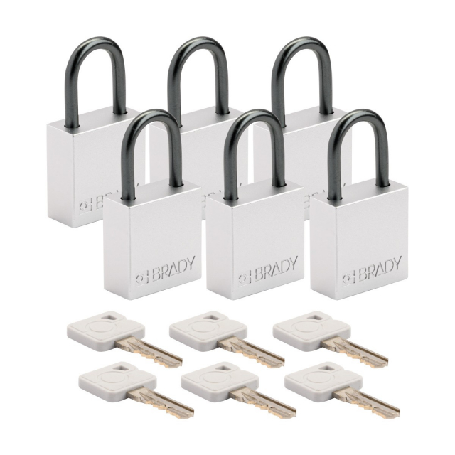 Brady, CPAL-WHT-25AL-KA6, Velocity Aluminum Compact Safety Lockout Padlock, White, Keyed Alike