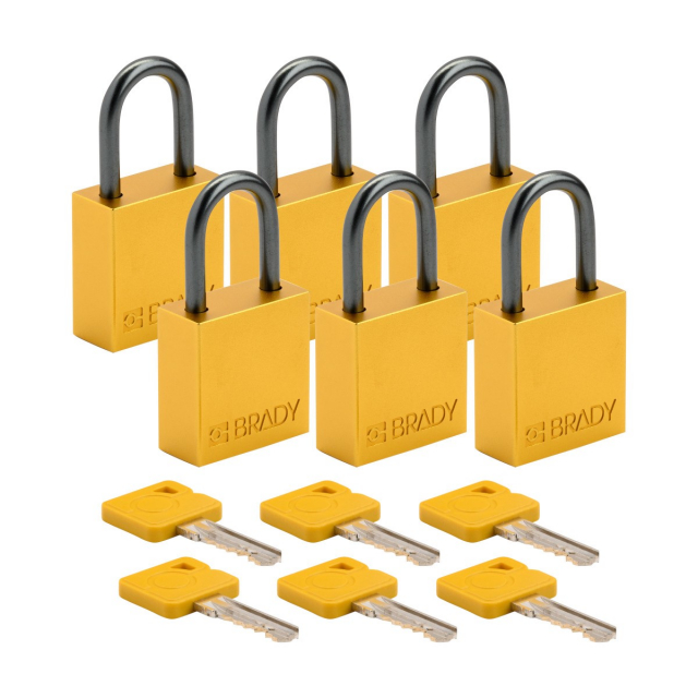 Brady, CPAL-YLW-25AL-KA6, Velocity Aluminum Compact Safety Lockout Padlock, Yellow, Keyed Alike