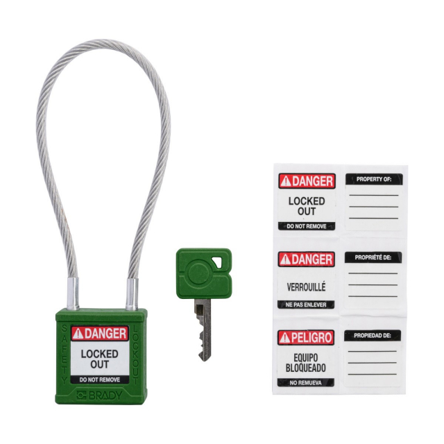Brady, CPPL-GRN-200CB-KD, Velocity Nylon Compact Cable Safety Lockout Padlock, 4" Shackle Clearance, Keyed Different, Green