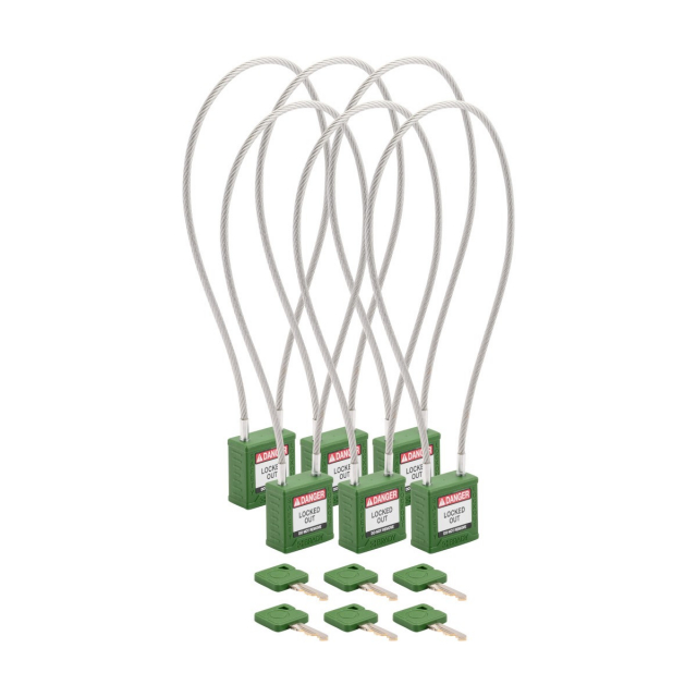 Brady, CPPL-GRN-400CB-KA6, Velocity Nylon Compact Cable Safety Lockout Padlock, 8" Shackle Clearance, Keyed Alike, Green