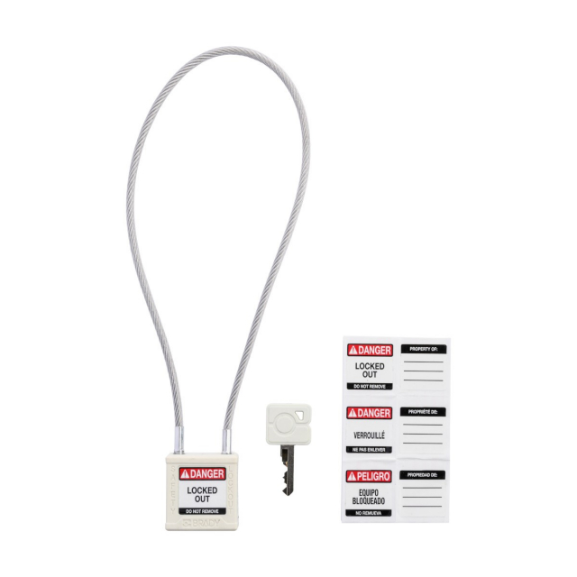 Brady, CPPL-WHT-400CB-KD, Velocity Nylon Compact Cable Safety Lockout Padlock, 8" Shackle Clearance, Keyed Different, White