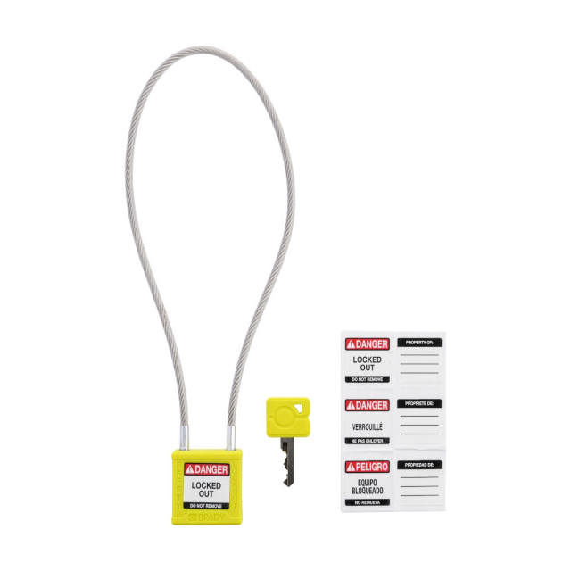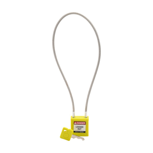 Brady, CPPL-YLW-400CB-KD, Velocity Nylon Compact Cable Safety Lockout Padlock, 8" Shackle Clearance, Keyed Different, Yellow