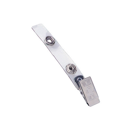 Embossed "U" Strap Clip - nickel-plated steel with 2-3/4" (70mm) clear vinyl strap