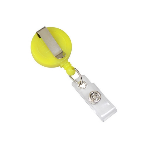 Brady People Id, 2120-3083, Round Plastic Neon Yellow Badge Reel w/ Slide-Type Belt Clip & Clear Vinyl Strap