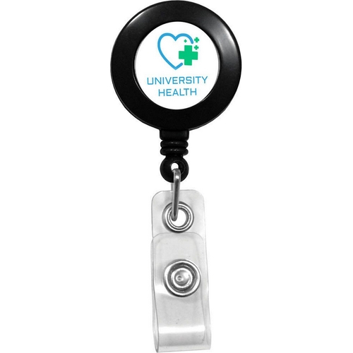 Brady People Id, 2120-3151, Black Badge Reel with Silver Sticker, Clear Vinyl Strap and Belt Clip