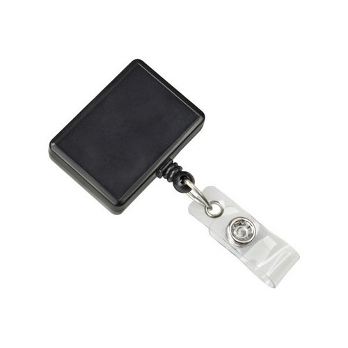Brady People Id, 2120-3901, Black Rectangle Badge Reel with Swivel Clip and Clear Vinyl Strap