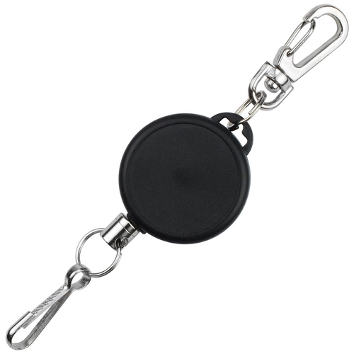Heavy-Duty Ski/Sports Reel features a plastic case, two end-fittings; a lobster claw that easily attaches to any zipper and a swivel hook that is perfect for ski passes. Reel diameter 1-1/2" (38mm), cord length 24" (609mm), rated - for 50,000 pulls.