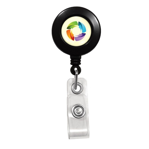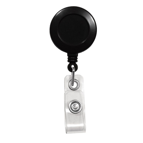 Black Plastic Round Badge Reel with Clip and Vinyl Strap