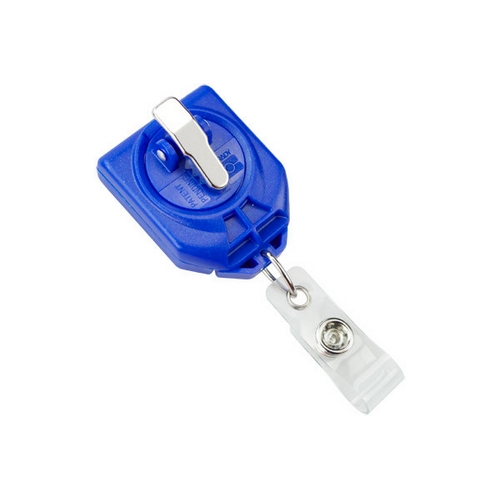B Reel™ No-Twist Badge Reel, Metallic Blue, ABS plastic with Swivel NPS clip with teeth. Clear vinyl strap. Cord length: 28"