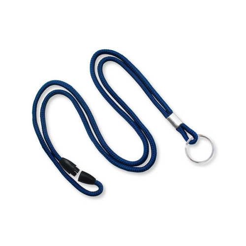 Brady People Id, 2137-2023, 1/8" Navy Blue Round Braided Lanyard with Split Ring, Break-Away
