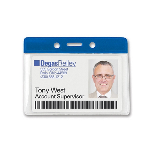 Quickly identify your employees by color of badge holder. Horizontal or vertical format, clear vinyl pocket with top color bar with slot/chain holes. Holders have a mil thickness of .009" in front and back.