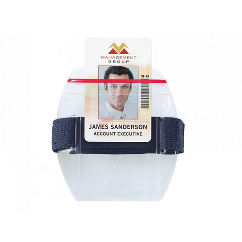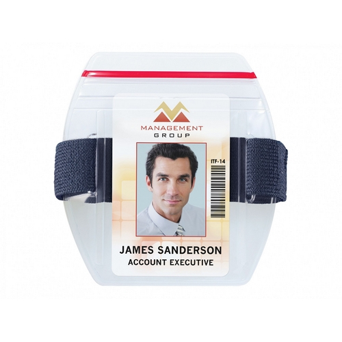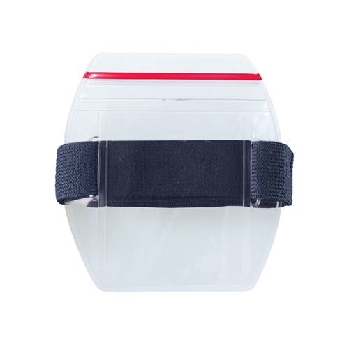 Arm Band Vertical Vinyl Badge Holder with Zipper Closure & Blue Strap - Credit Card Size Keep Your ID Card Secure With Zipper Closure. Deal For Active Personnel. Holder Won’t Slip Off Clothing And Flexes With Arm Movement. Insert Size: 3-3/8" x 2-3/8"
