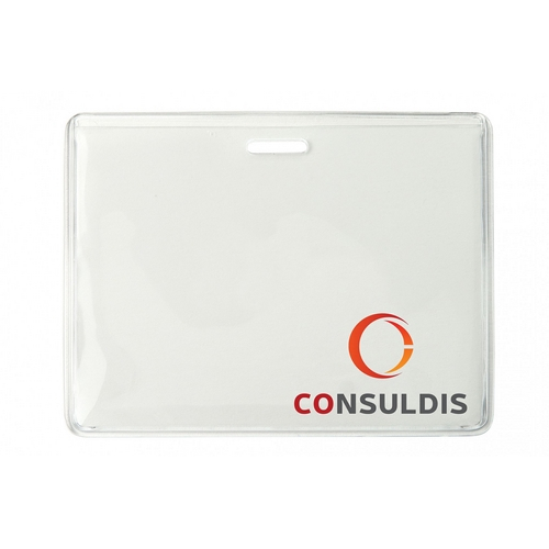 Heavy-Duty Clear Vinyl Horizontal Proximity Card Holder with Slot. More Rigid Vinyl Handles Multiple Cards Without Splitting. Strap Clip Goes Through The Front And Back Of Holder To Lock In Your Card. Insert Size: 3-5/8" x 2-1/2"