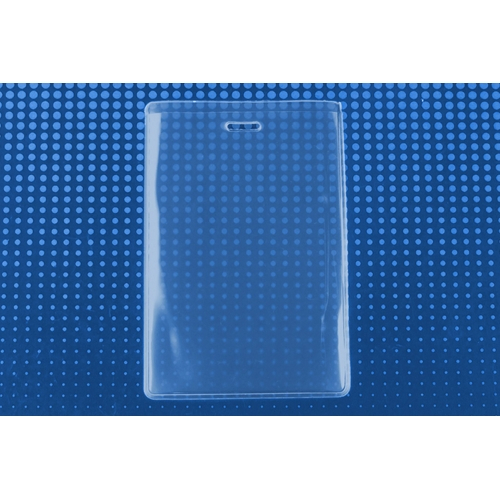 S-Series Clear Soft Vinyl Vertical Proximity Card Holder with Slot. Strap Clip Goes Through The Front And Back Of Holder To Lock In Your Card. Insert Size: 2-3/4" x 3-7/8"